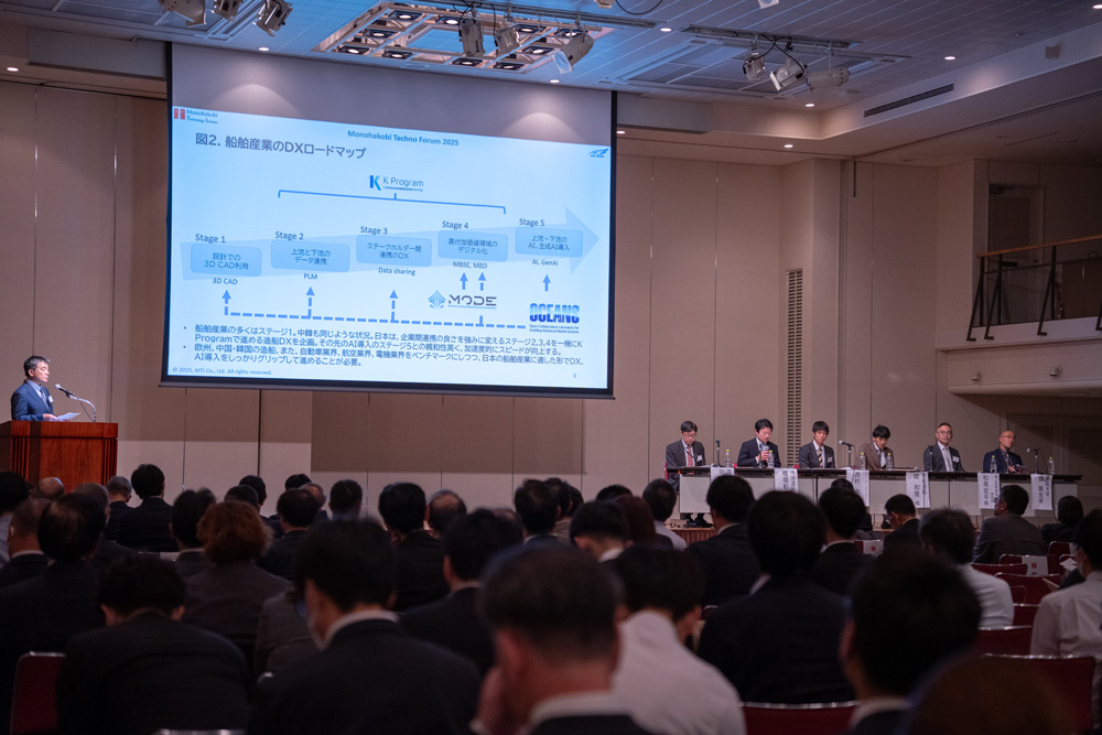 本年度のテーマは「オープンイノベーションとデジタル連携で拓く日本海事クラスターの未来」。MTIの研究開発活動の紹介に加え、国土交通省様による基調講演、造船分野の第一線で活躍される皆様を迎えたパネルディスカッションでは、日本の海事産業に求められる取り組みや今後の施策について、活発な議論が交わされました。