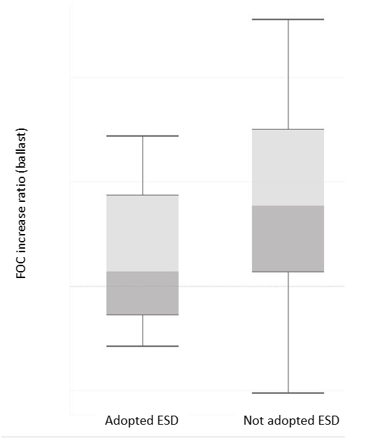 船体付加物(ESD)搭載有無による燃費変化の比較検証例